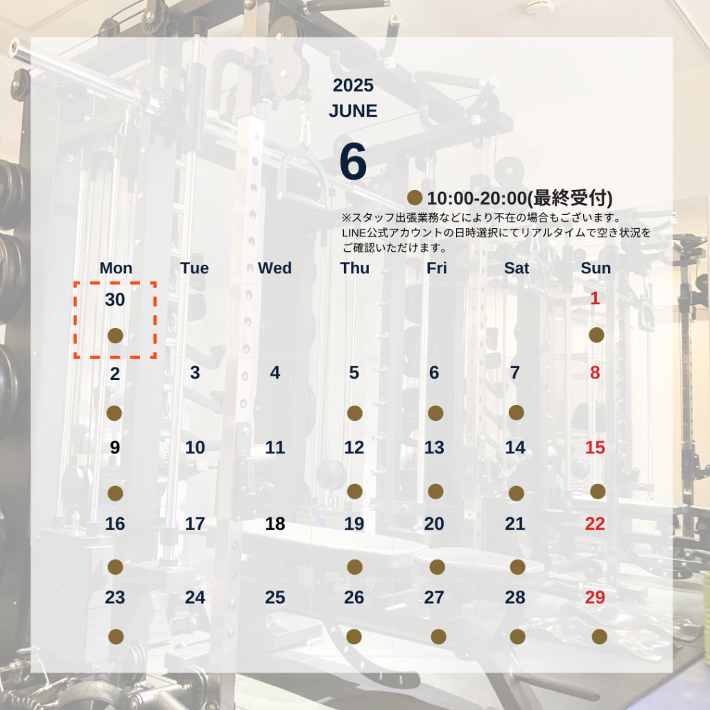 ※スタッフ出張業務などで営業時間内でも不在となることがございます。予約日時選択にてリアルタイムで空き状況をご確認できます。