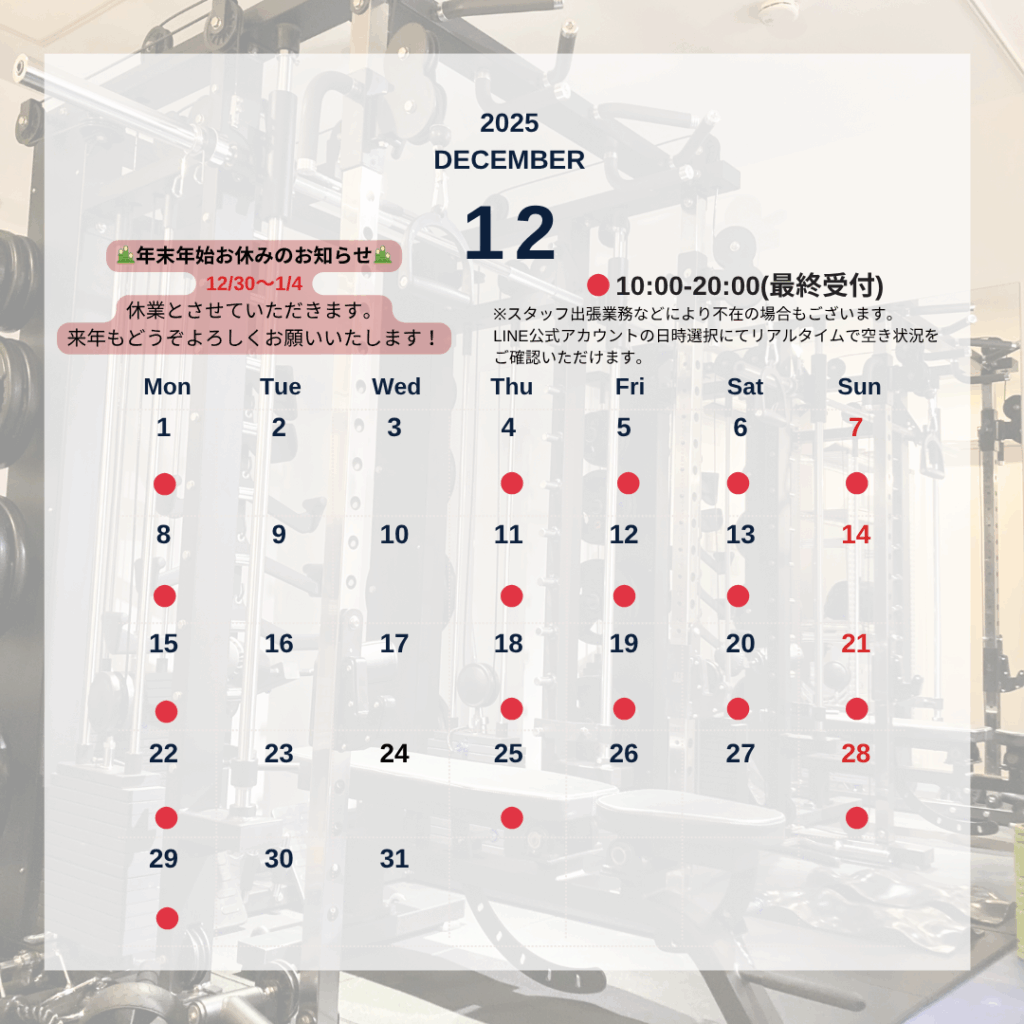 【12月営業日🎄公開しました!】