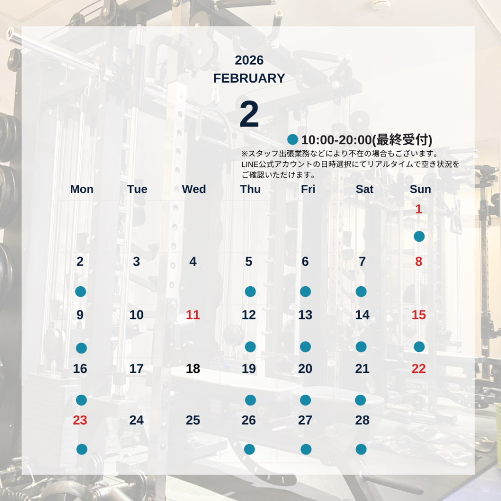 ※スタッフ出張業務などで営業時間内でも不在となることがございます。予約日時選択にてリアルタイムで空き状況をご確認できます。